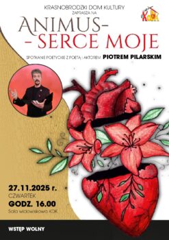 Krasnobrodzki Dom Kultury serdecznie zaprasza na recital poetycki Piotra Pilarskiego, który odbędzie sie w czwartek 27 listopada 2025r. o godzinie 16.00.